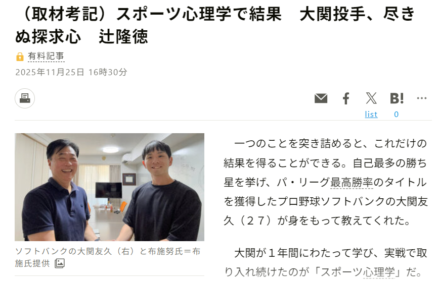 スポーツ心理学で結果 大関投手、尽きぬ探求心【朝日新聞デジタル】