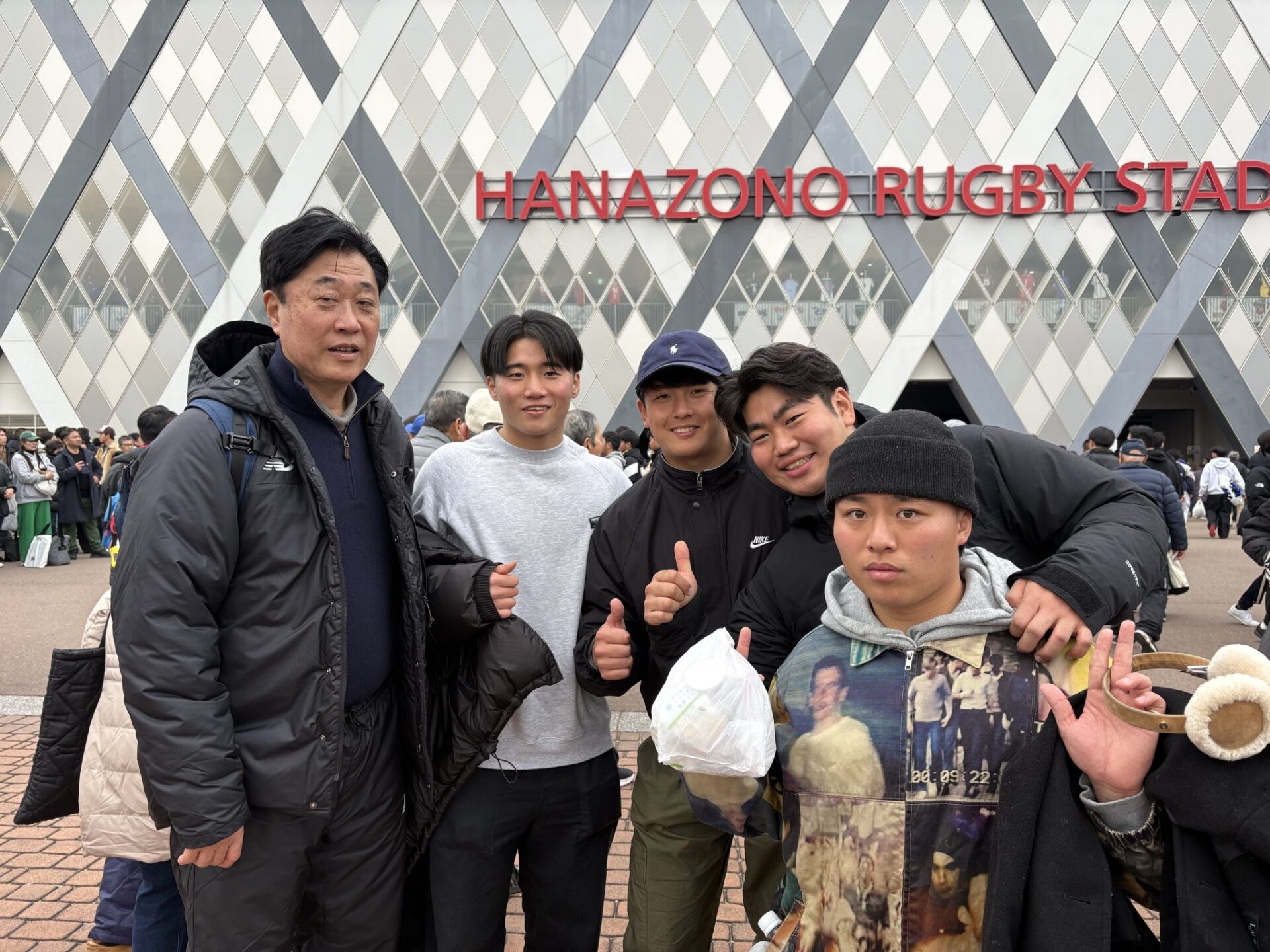 桐蔭学園ラグビーファミリー。昨年の3年生が花園初戦に駆けつけてくれました。