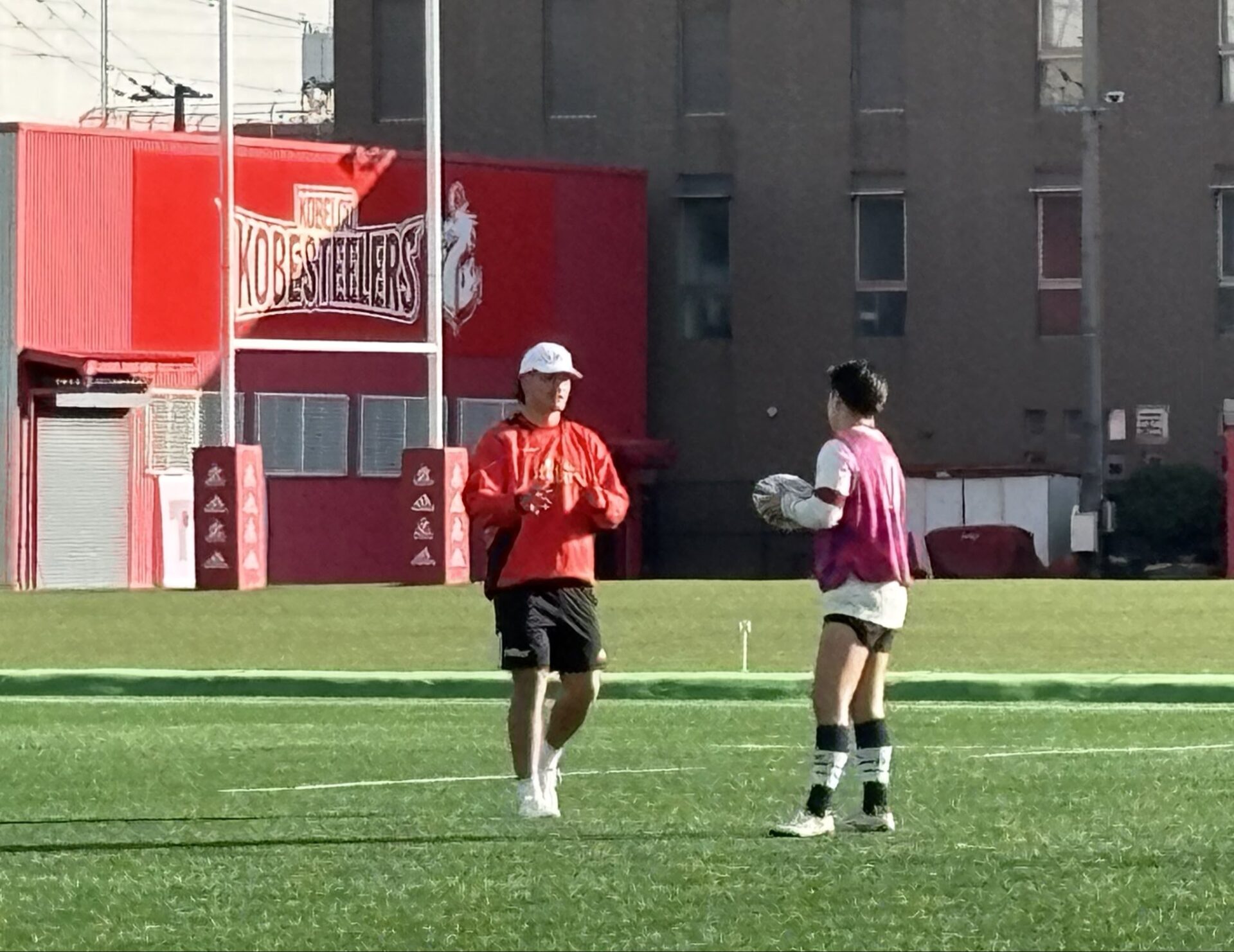 桐蔭学園ラグビーファミリー。神戸製鋼での練習にOBの伊藤大祐くんが来てくれました。